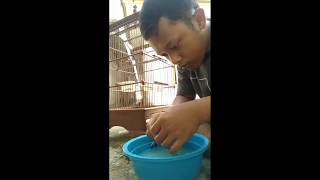 Berikan shampo secara langsung keburung... Jgn di pegang langsung teteskan dari atas sangkar.... Untuk menghindari burung tkt sama kita...