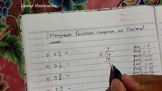 pecahan #merubahpecahan Cara merubah pecahan campuran menjadi pecahan biasa dan juga cara merubah pecahan campuran menjadi pecahan desimal ...