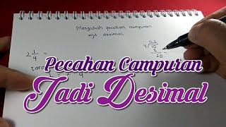 Cara mudah Mengubah Pecahan Campuran ke Bentuk Desimal. Caranya, pecahan campuran diubah terlebih dahulu menjadi pecahan biasa. Selanjutnya ...